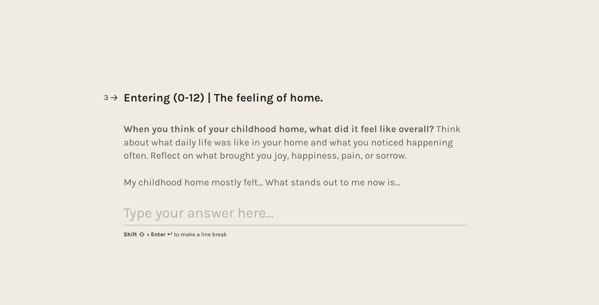 Each question includes guiding prompts to help you reflect, but you are free to answer in your own way. Grammar and writing style do not matter. What matters is that your response feels true and complete to you.